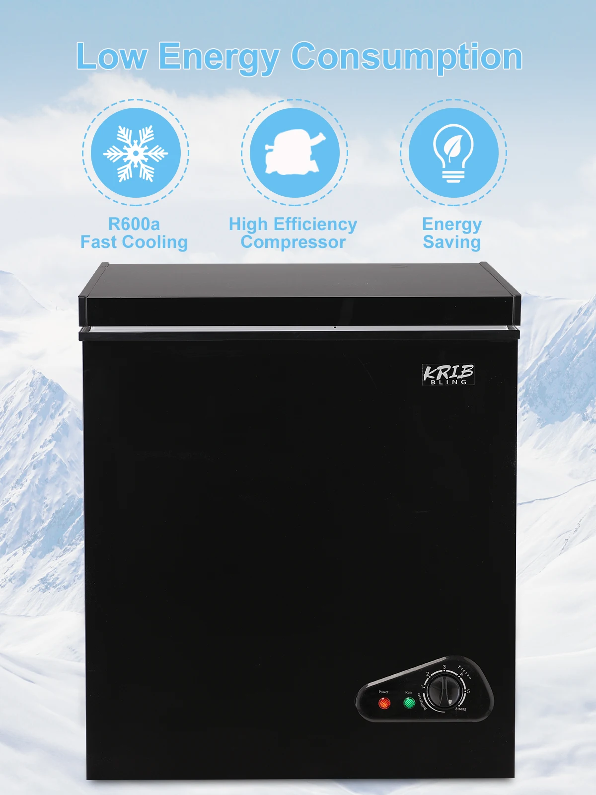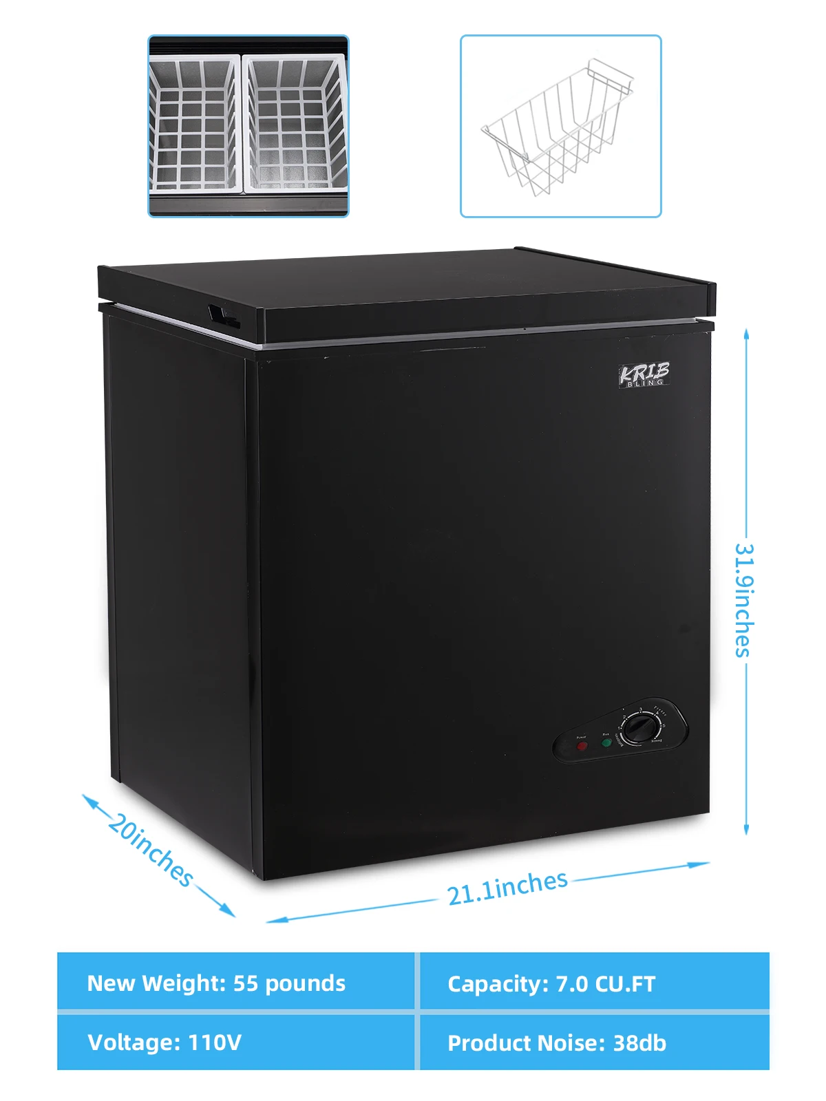 KRIB BLING Compact Chest Freezer with 7.0 Cu.ft Top Door Open Freestanding Deep Freezer with 7-Level Temperature Adjustment